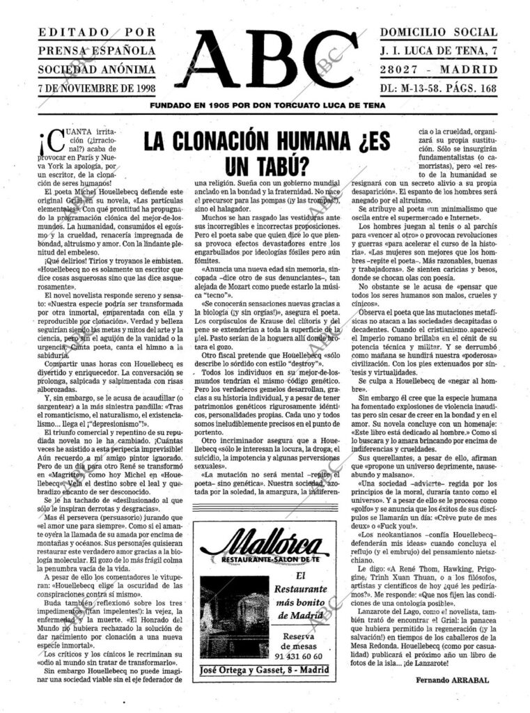 ¡CUANTA irritación (¿irracional?) acaba de provocar en París y Nueva York la apología, por un escritor, de la clonación de seres humanos!